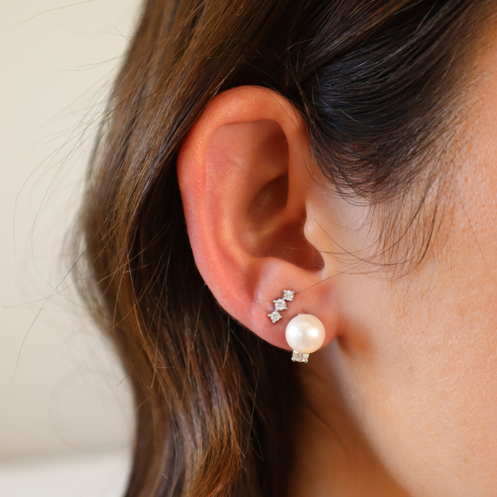 עגיל אלגנטי ועדין, משובץ 3 יהלומים טבעיים במשקל כולל של 0.10 קראט, היוצרים נצנוץ רך ומאוזן עם מראה נקי ומדויק. סידור היהלומים מעניק לעגיל תחושת זרימה והרמוניה, ומשתלב בצורה מושלמת עם כל סגנון.