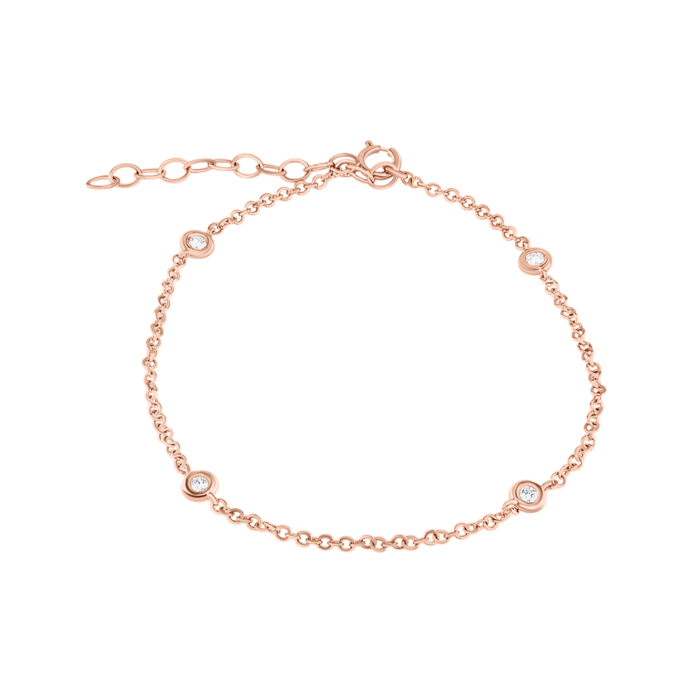 צמיד יהלומים עדין ומודרני, המשובץ ב4 יהלומים טבעיים בשיבוץ 'בזל' נקי ומדויק, למשקל כולל של 0.20 קרט. שיבוץ הבזל מעניק ליהלומים מראה חלק, עכשווי ובטוח, ומדגיש את הברק הטבעי שלהם תוך שמירה על קו מינימליסטי.